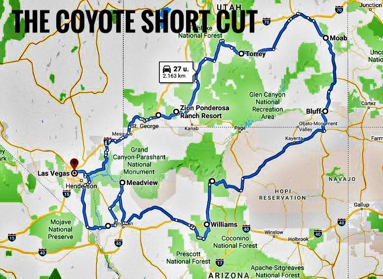 Highlights: Las Vegas, Zion NP, Dixie NF, Bryce NP, Capitol Reef, Arches NP, Canyonland NP, Mexican Hat, Monument Valley, Red Rock,State Park, Grand Canyon, Route 66, Williams, overnachting op 2 x Dude Ranch