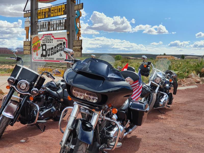 Snel op je iron horse deze dag want HISTORIC ROUTE 66 wacht op ons. Via diverse kleine dorpjes zoals Seligman & Yampai komen we aan bij Hackberry, An old gasstation waar de tijd inderdaad heeft stil gestaan. Op het gemak een bakkie en nog meer foto's schieten en hup we knallen weer OLD 66 op. Heerlijk dat idee dat 56 cm onder je, het oude asfalt van THE MOTHER ROAD aan je voorbij trekt.... EASYRIDER IS NIETS BIJ ONS!!!!! Deze te gekke dag eindigen we op een Working Ranch aan de WEST RIM van de Grand Canyon. Op deze wel hele unieke locatie zullen we onze PK’s inruilen voor 1 PK en gaan we ervaren hoe Billy de Kids zich gevoeld moet hebben als hij met zijn paard over de prairie reed bij zonsondergang!